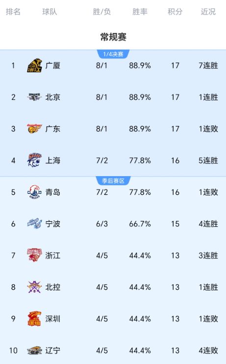 - CBA综述:卫冕冠军登顶榜首,广东8连胜告一段落,浙江逆转青岛